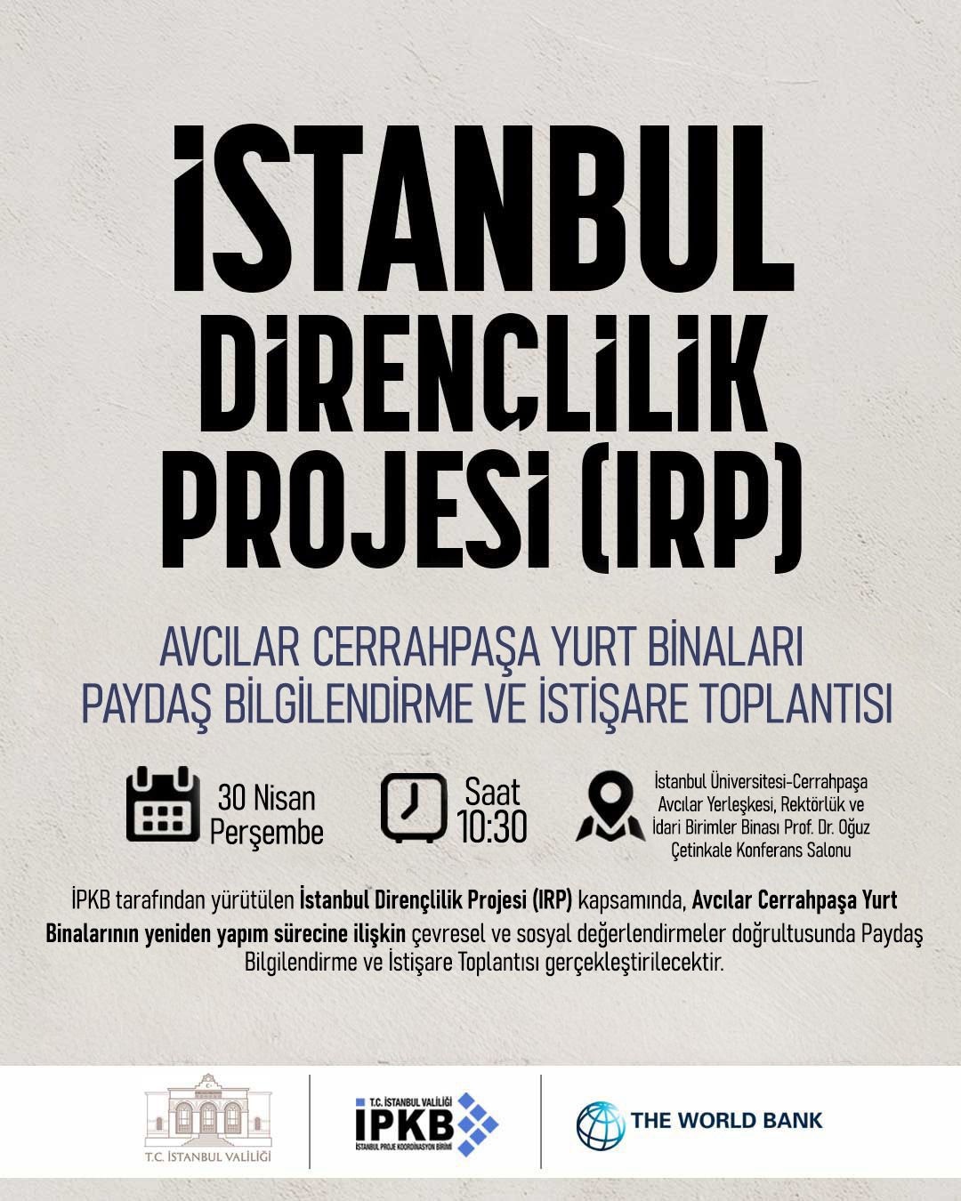 İstanbul Valiliği İstanbul Proje Koordinasyon Birimi’nin direktörü olarak bu mesajı sizlerle paylaşmak benim için bir övünç kaynağı. İPKB olarak yürüttüğümüz İstanbul Sismik Riskin Azaltılması ve Acil Durum Hazırlık Projesi (İSMEP) ülkemizde uygulanan ilk risk azaltma projesidir. İSMEP, bugün afet oluşmadan önlem alma yaklaşımının sadece ülkemizde değil, dünya üzerinde de en başarılı örneklerinden biri. Projemiz, acil durum hazırlık kapasitesinin artırılması, öncelikli kamu binaları için sismik riskin azaltılması ve imar ve yapı mevzuatının uygulanması olarak üç temel bileşenden oluşmaktadır.